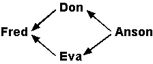 The most widely used approach for calculating inbreeding coefficients is Wright's "paths" method (see note), best illustrated by a simple example. Suppose we mate half-sibs, the common ancestor, Anson, being the father. Don is the son of Anson and Bess; Eva the daughter of Anson and Claire. Fred is one of their progeny.