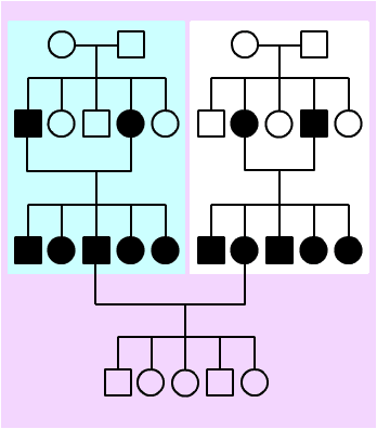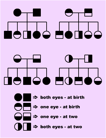 above example shows a number of pedigrees exhibiting phenotypic heterogeneity