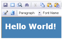 This will apply a background color of "steelblue", font color of "white", and font family of "Verdana,Arial,Helvetica" to the Editor content as shown in the screenshot below: