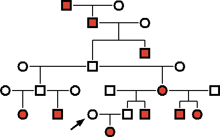 Though most of the unaffected dogs are related to some degree to the ones that bloated, the bitch indiated with the arrow is Polish and shares no recent ancestry with the others. Though we cannot exclude the possibility that she carries the same recessive allele as the others, we are not forced to suppose this if the trait is dominant.